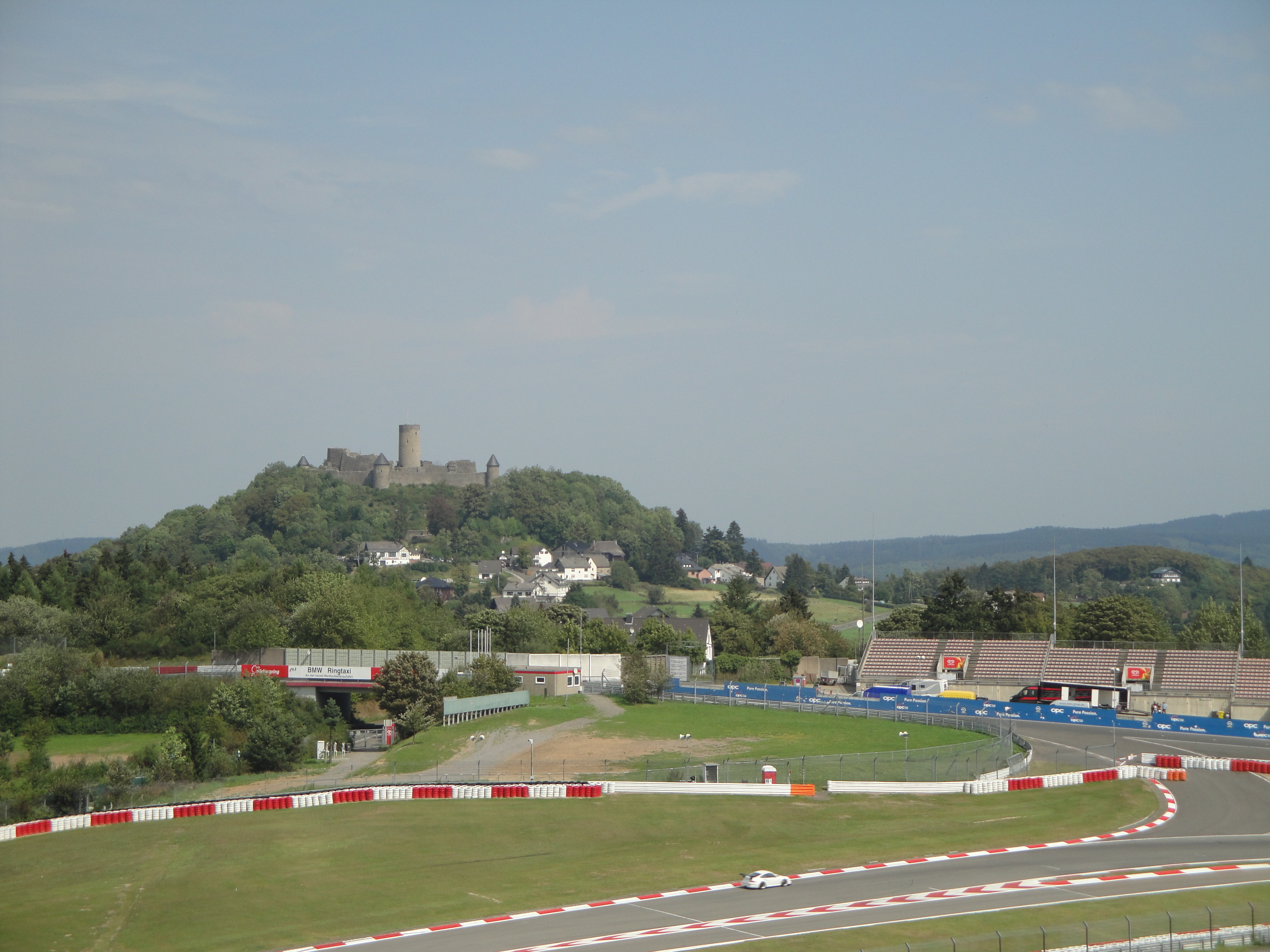 Tras pasar mi última noche en Schalkenmehren, y después de desayunar unos huevos revueltos y café, pagué la habitación y salí hacia el circuito de Nürburgring, tal y como me había recomendado el camarero, y que está apenas a 20 kilómetros en dirección norte. Al salir del aparcamiento me tropecé con dos chicas alemanas senderistas que habían llegado la noche anterior; les ofrecí que subieran al coche, pues la cuesta hasta donde comienza el camino es de aúpa. No podían tener miedo de mi presencia: estaba afeitado, recién duchado, y me habían visto desayunando civilizadamente en el hotel. Sin embargo no entendían una palabra de inglés, rieron nerviosas y salieron asustadas.