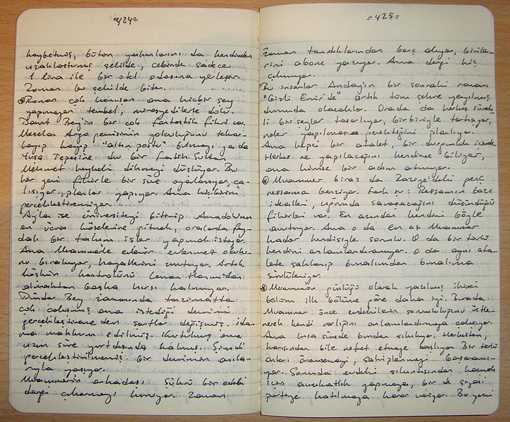 Para su autor, el cuaderno en blanco (que va dejando de serlo) es una domesticación del caos. Sus tapas y su cinta elástica son la valla contra una realidad desordenada, que ha renunciado a la reflexión y a la certeza de la muerte. Las páginas como un coto de caza invertido: desde su interior se observa e incluso destruye la realidad, pero la realidad no puede entrar dentro de ella si no es por la puerta de su propietario.